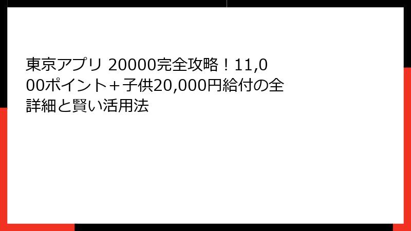 これらを総称して東京アプリ 20000と呼ぶ場合が多く、家族単位で考えると親子で合計31,000円相当の支援が受けられる可能性があります。