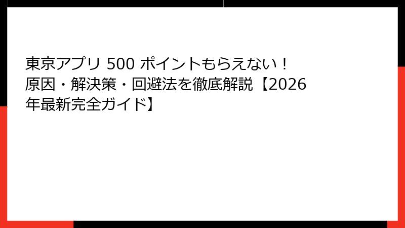 - 東京アプリで500ポイントがもらえない!?原因と解決策を徹底解説【2026年最新版】