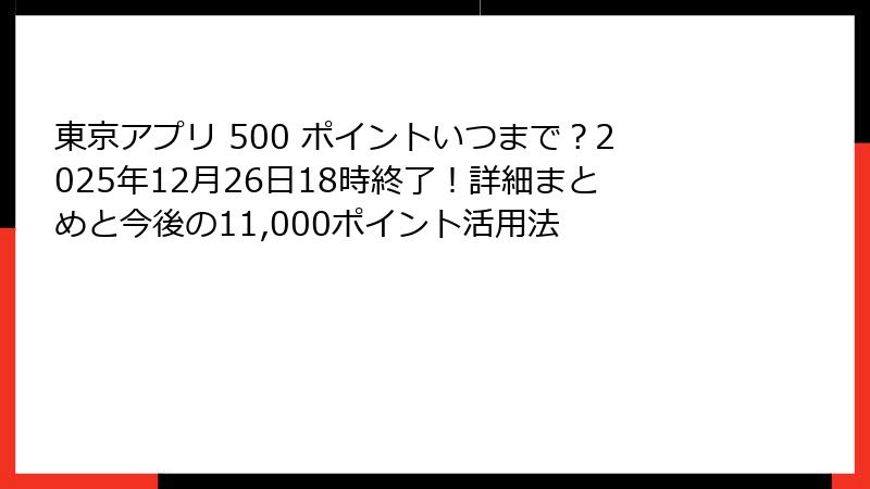 特に、「東京アプリ 500 ポイントいつまで」という検索キーワードでこの記事に辿り着いた方々は、きっとこのキャンペーンの期限や詳細が気になっているはずです。