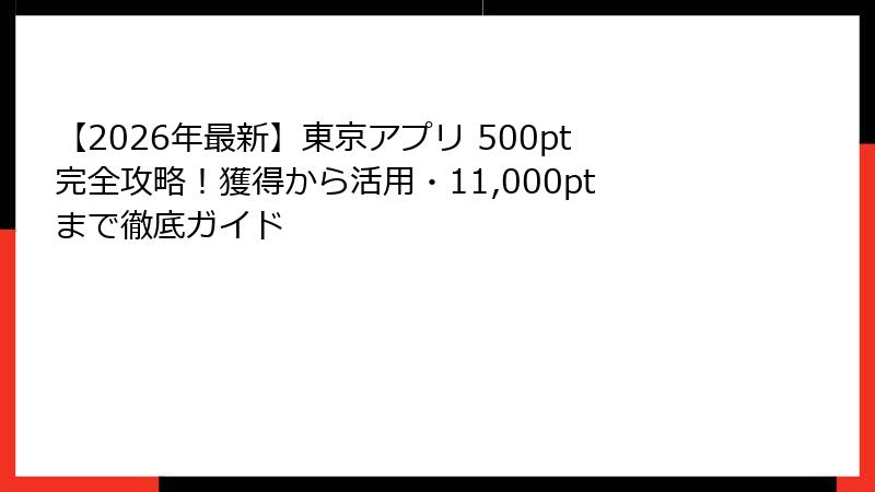 【2026年最新】東京アプリ 500pt完全攻略!獲得から活用・11,000ptまで徹底ガイド