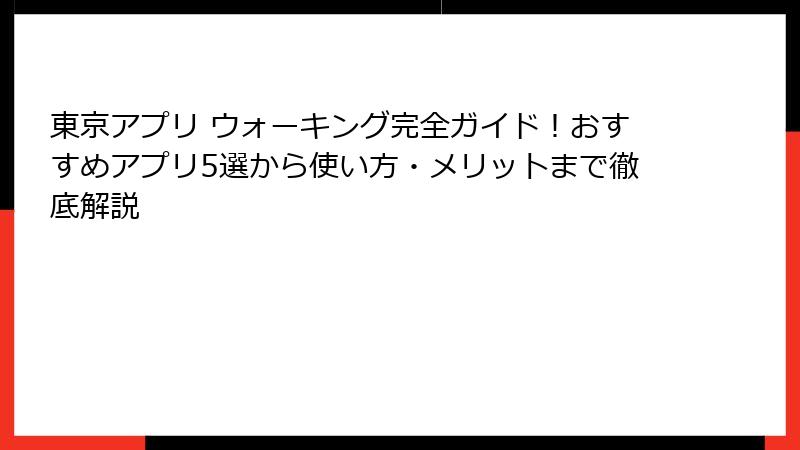 東京アプリ ウォーキング完全ガイド!おすすめアプリ5選から使い方・メリットまで徹底解説