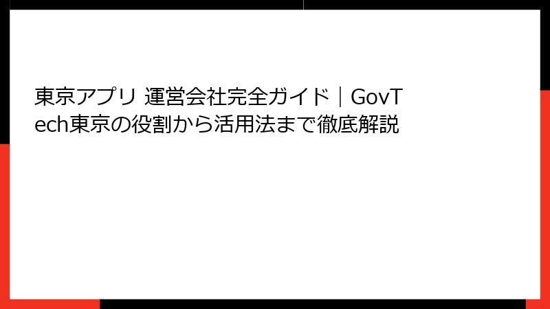 - 東京アプリの運営会社「GovTech東京」の役割と詳細
