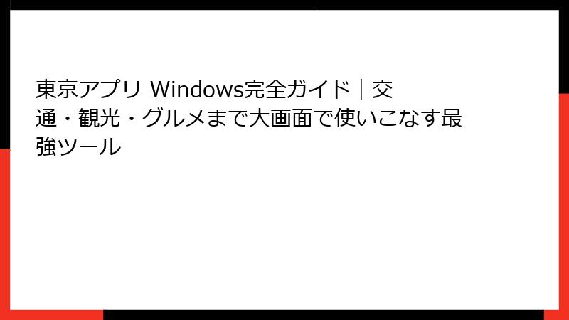 東京アプリ Windows完全ガイド|交通・観光・グルメまで大画面で使いこなす最強ツール