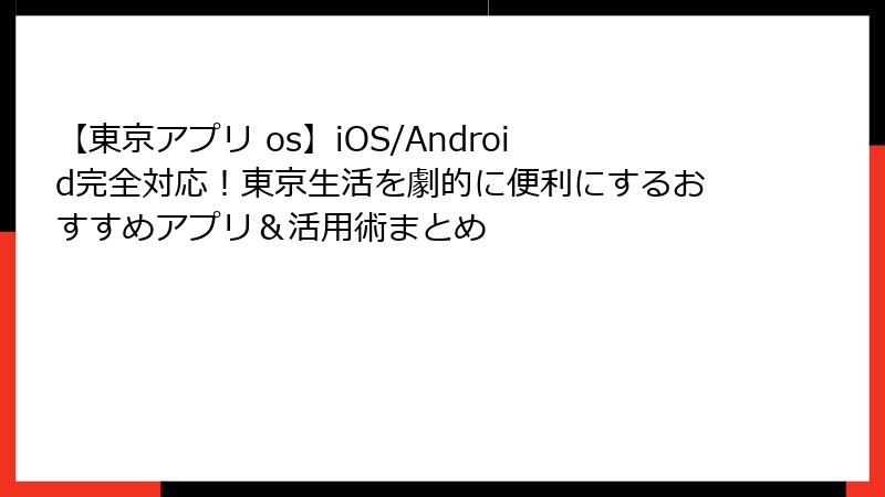 特に、「東京アプリ os」というキーワードで検索される方は、東京関連のアプリをiOSやAndroidなどのOSでどのように活用できるかを知りたいと思っているのではないでしょうか。