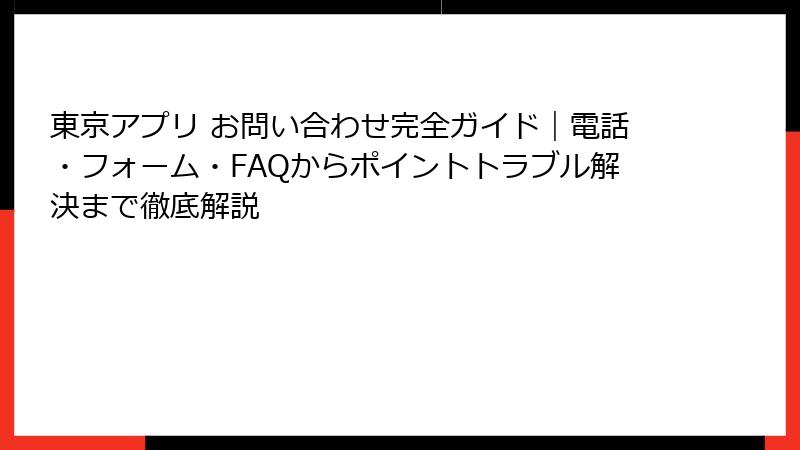 東京アプリ お問い合わせでは、ポイントの確認方法や交換手順についての質問が頻出しており、アプリ内のガイドだけでは不十分な場合があります。