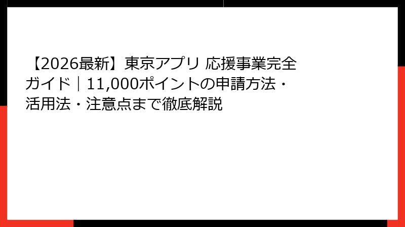 【2026最新】東京アプリ 応援事業完全ガイド|11,000ポイントの申請方法・活用法・注意点まで徹底解説