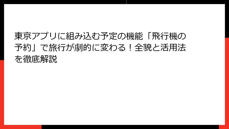 特に、東京アプリに組み込む予定の機能として飛行機の予約が話題になっており、これによりアプリの利便性がさらに向上する見込みです。