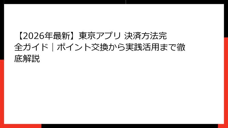 【2026年最新】東京アプリ 決済方法完全ガイド|ポイント交換から実践活用まで徹底解説