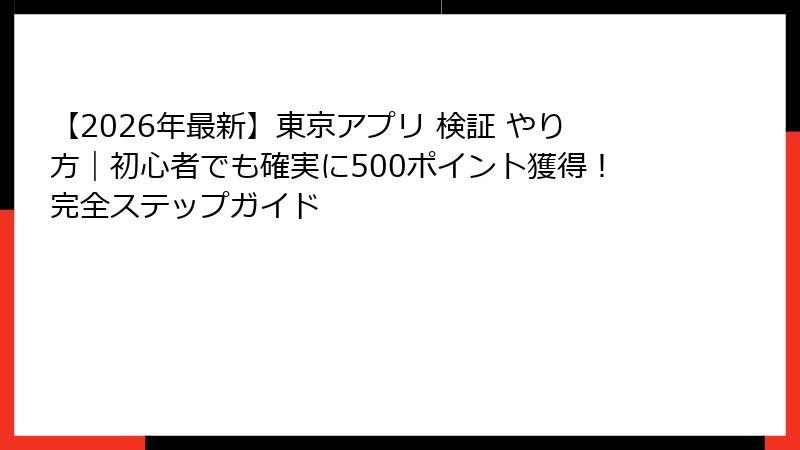 - 東京アプリ 検証 やり方のまとめと注意点|11,000ポイントに向けて