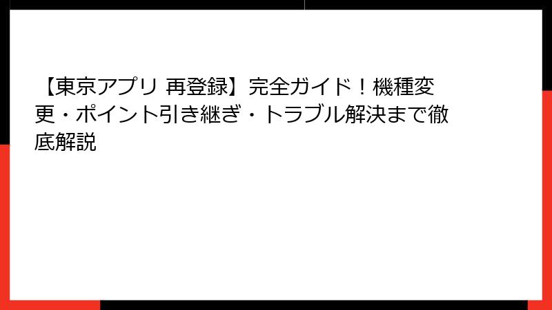 特に、「東京アプリ 再登録」というキーワードで検索される方が多いのは、機種変更やアプリのトラブルで再登録が必要になるケースが頻発しているからです。