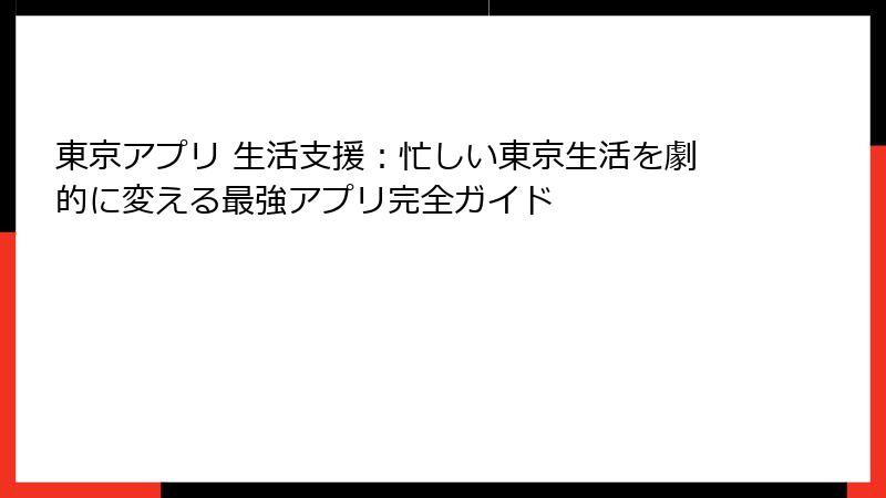 - 東京アプリ 生活支援の未来展望:今すぐ始めよう、スマートライフ
