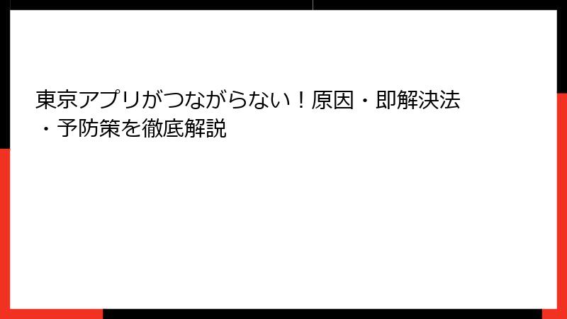 東京アプリがつながらない!原因・即解決法・予防策を徹底解説