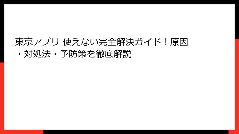 - 東京アプリが使えない主な原因を徹底解剖 – ログインエラーから登録トラブルまで