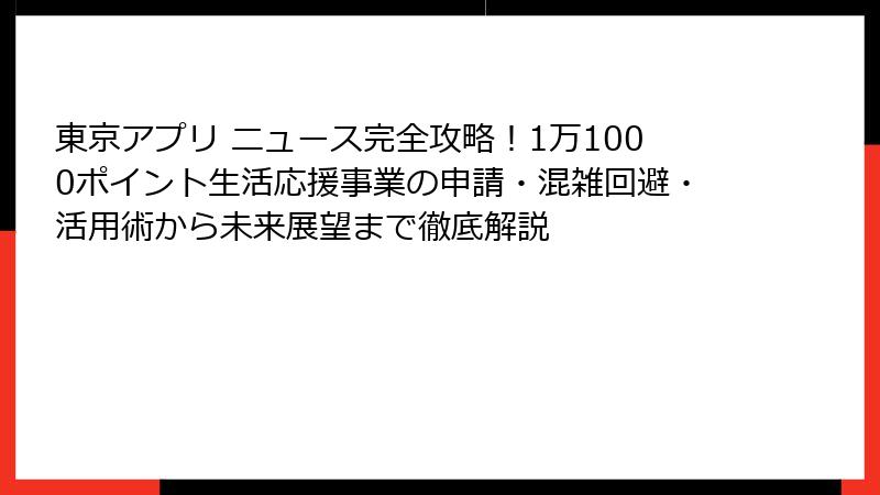 「東京アプリ ニュース」最新速報:生活応援事業が始まった!東京都民必見のポイント付与キャンペーン