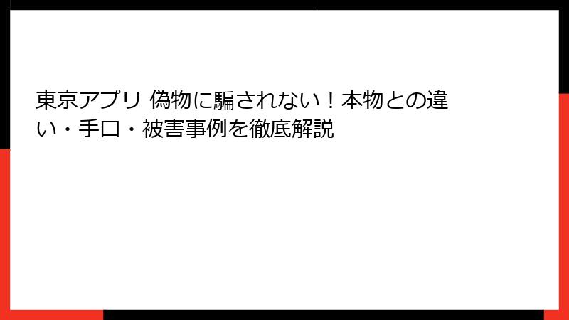 「東京アプリ 偽物」の検索者が求める核心部分です。