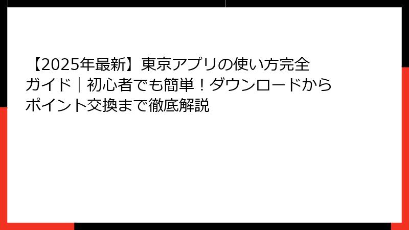 【2025年最新】東京アプリの使い方完全ガイド|初心者でも簡単!ダウンロードからポイント交換まで徹底解説