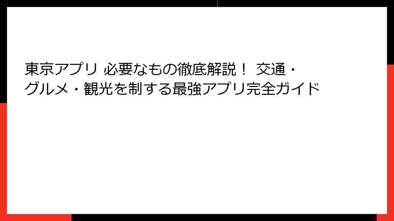 「東京アプリ 必要なもの」を揃え、今日から快適ライフを始めましょう。