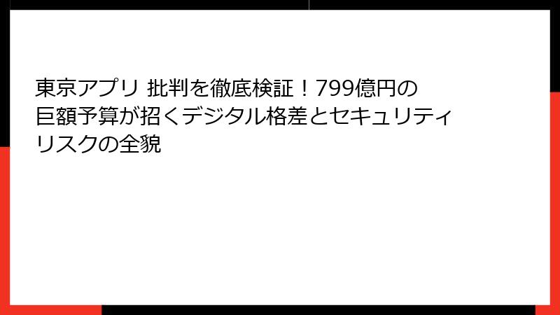 東京アプリ 批判は、予算の無駄、デジタル格差、プライバシー問題の3点に集約されます。