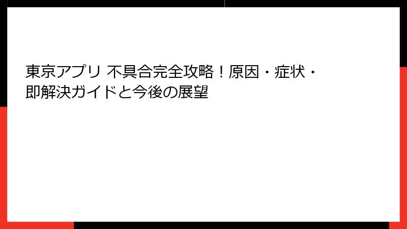 この記事では、東京アプリの不具合について深く掘り下げ、その種類、原因、影響を詳しく解説します。