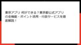 東京アプリは、東京都が提供する公式スマートフォンアプリで、都民の日常生活をより便利にし、行政サービスを身近にするためのツールです。