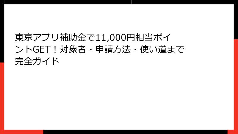 東京アプリ補助金は、11,000ポイントで生活支援とデジタル化を推進。
