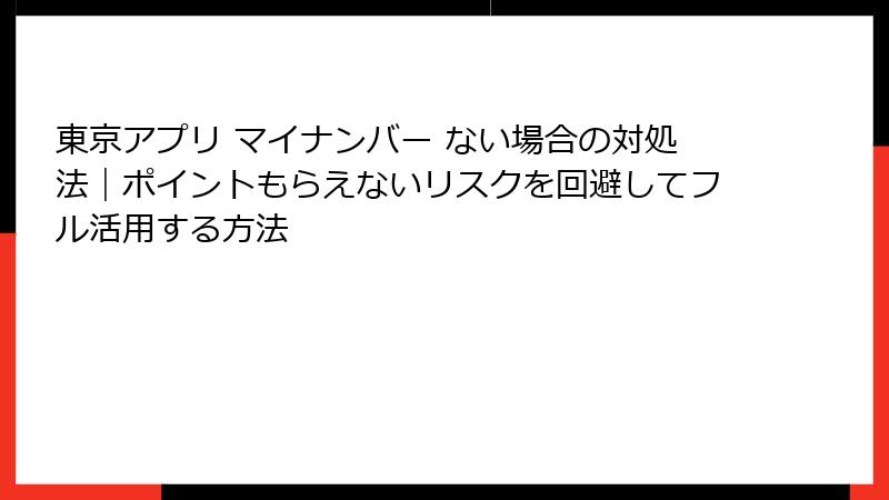 東京アプリでマイナンバーカードがない場合の対処法を徹底解説!ポイントがもらえないリスクとは?