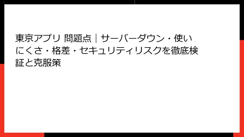 - 東京アプリとは?導入前に知っておきたい基本と潜在的な問題点