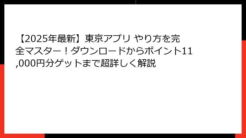 【2025年最新】東京アプリ やり方を完全マスター!ダウンロードからポイント11,000円分ゲットまで超詳しく解説