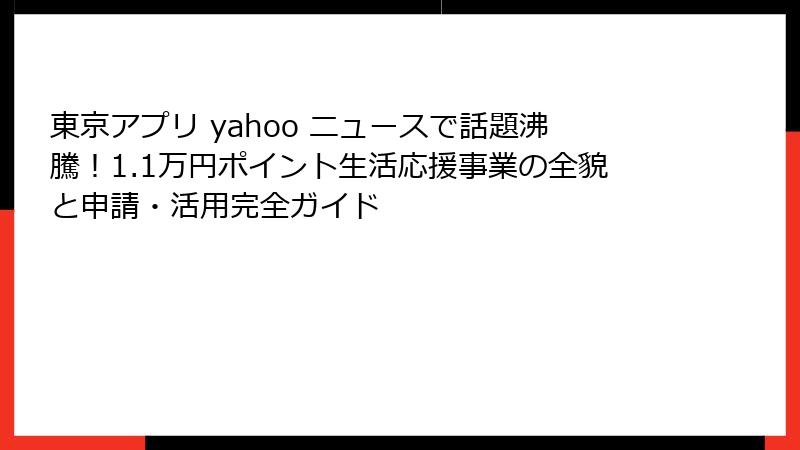 - 東京アプリ生活応援事業の概要:Yahooニュースで話題の1.1万円ポイント付与とは?