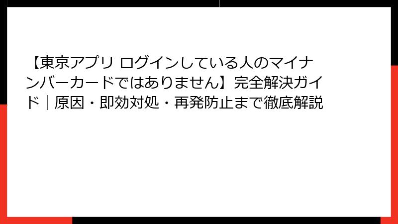 東京アプリを利用しようとして、突然「ログインしている人のマイナンバーカードではありません」というエラーメッセージが表示されて困ったことはありませんか? このキーワード「東京アプリ ログインしている人のマイナンバーカードではありません」で検索してこの記事にたどり着いたあなたは、きっと東京都の行政サービスアプリやマイナンバーカード連携ツールでログインに失敗し、ストレスを感じているはずです。