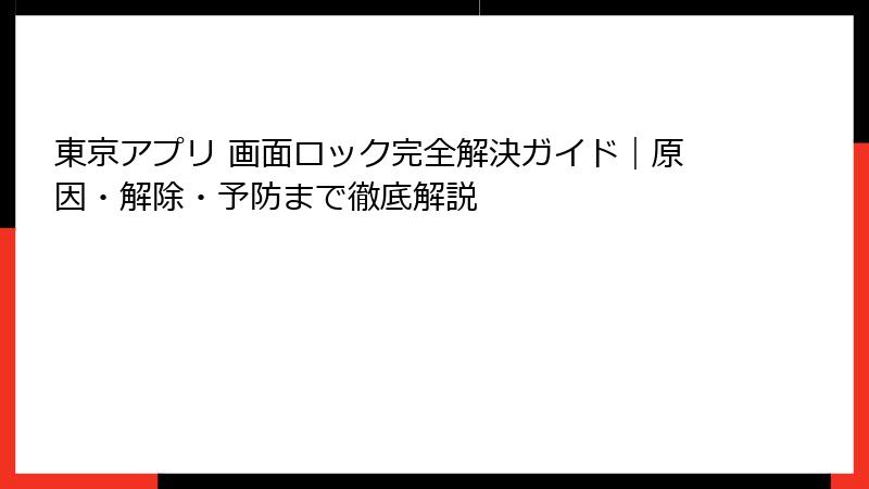 - 東京アプリ画面ロックを防ぐ予防策とベストプラクティス