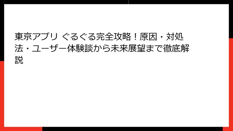 東京アプリ ぐるぐる完全攻略!原因・対処法・ユーザー体験談から未来展望まで徹底解説
