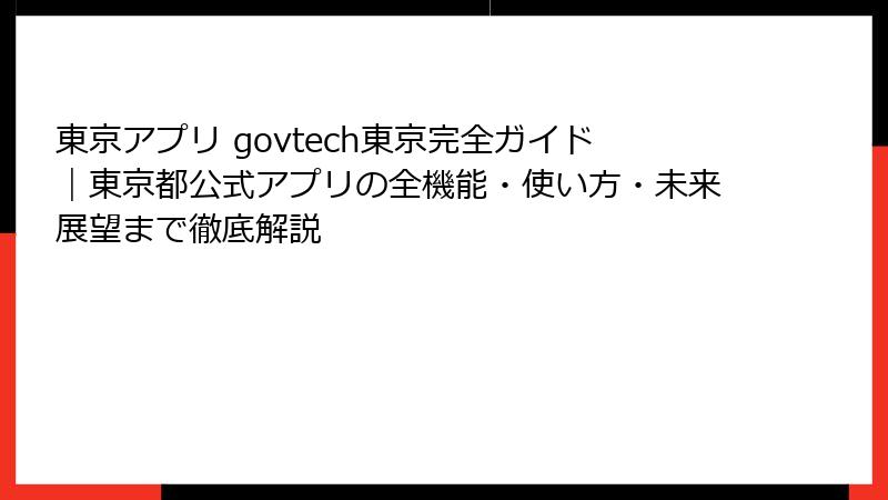 この記事では、東京アプリ govtech東京の基本的な概念から、その歴史的背景、意味、そして初回ユーザー向けのガイドまでを詳しく解説します。