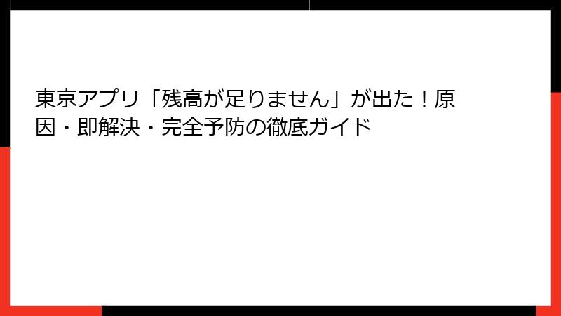 東京アプリ「残高が足りません」が出た!原因・即解決・完全予防の徹底ガイド