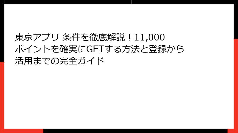 - 東京アプリ利用の注意点とデメリット:条件をクリアするためのTips
