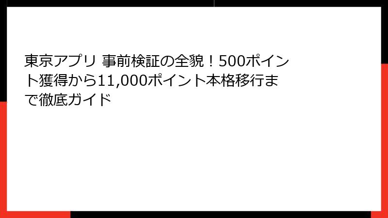 - 東京アプリ 事前検証を活用して賢くポイントを獲得しよう! まとめと次の一手