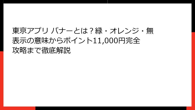 - 東京アプリのバナーをマスターして豊かな生活を:ポイント活用術とアプリの未来