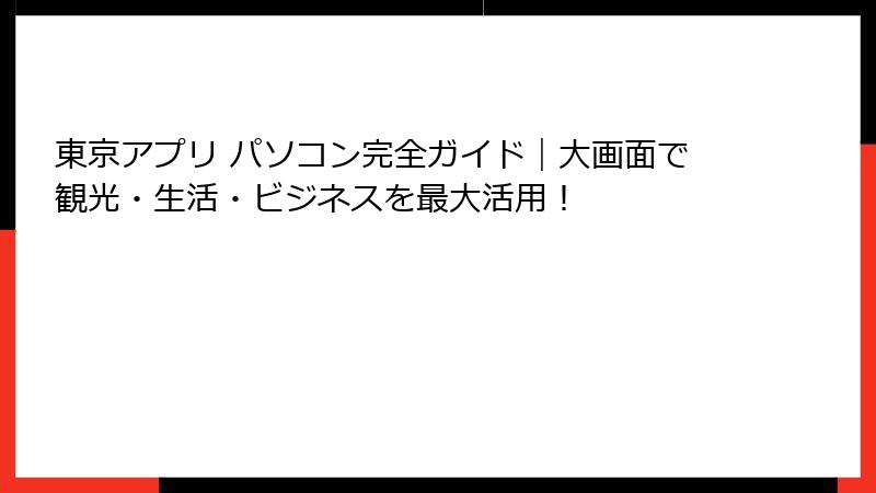この記事を通じて、東京アプリ パソコンを始めてみたい初心者の方から、すでに活用している上級者の方まで、役立つ情報を提供します。