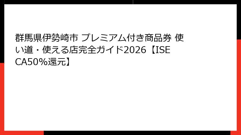 伊勢崎市のプレミアム付き商品券は、2026年の50%還元という高水準を達成したことで、今後のキャンペーンも高い期待が寄せられています。