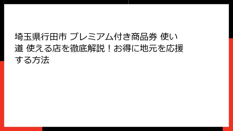 埼玉県行田市 プレミアム付き商品券 使い道 使える店を徹底解説!お得に地元を応援する方法