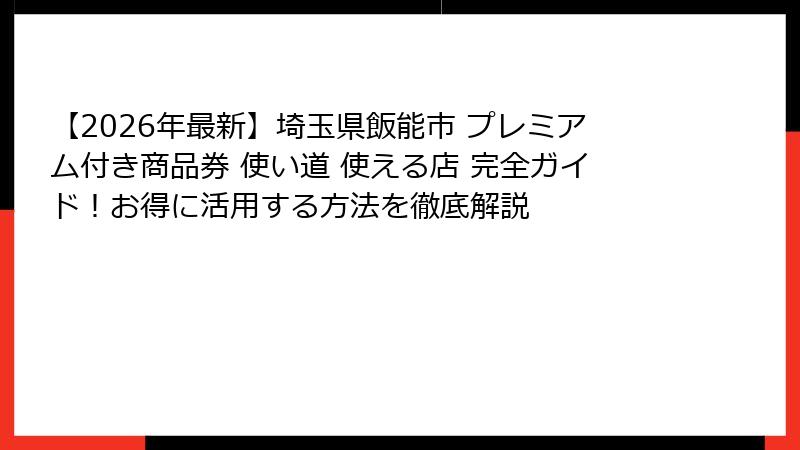 - 埼玉県飯能市のプレミアム付き商品券とは?2026年最新情報と基本概要