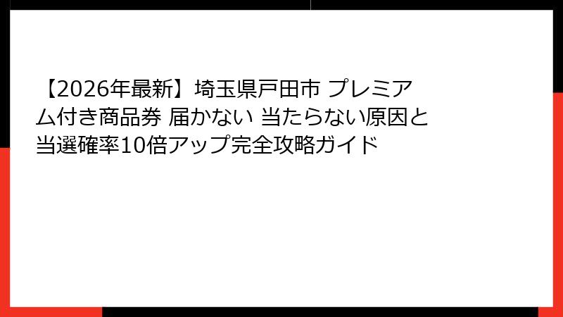 - 埼玉県戸田市プレミアム付き商品券が届かない・当たらない!2026年最新の現状と原因を徹底解明
