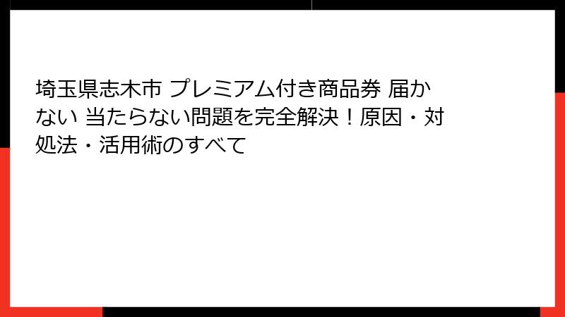 - 届かない・当たらないを防ぐための実践ガイド:志木市プレミアム付き商品券の対処法とTips