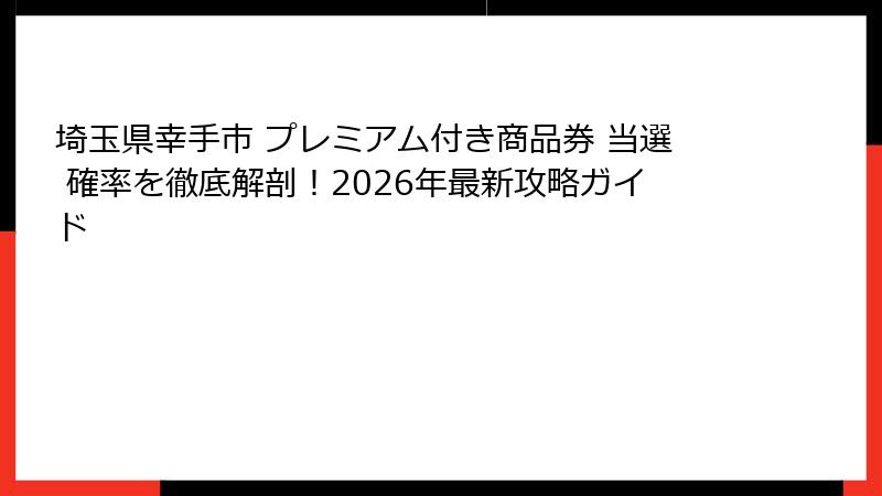 - 幸手市プレミアム付き商品券当選確率まとめ!2026年のチャンスを逃さないために