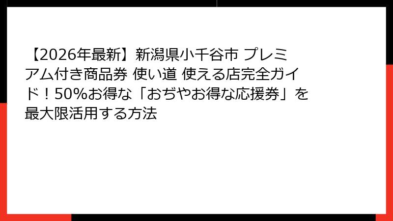 - 【2026年最新】小千谷市プレミアム付き商品券「おぢやお得な応援券」完全ガイド!50%お得で使える店と賢い使い道を徹底解説