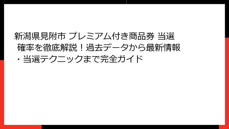 - 新潟県見附市 プレミアム付き商品券 当選 確率を劇的に上げる5つの鉄則