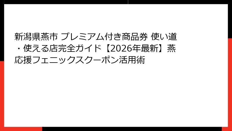 新潟県燕市の場合、この商品券は「燕応援フェニックスクーポン」として発行されており、市民が地元店舗で利用することでお得に買い物ができる仕組みです。