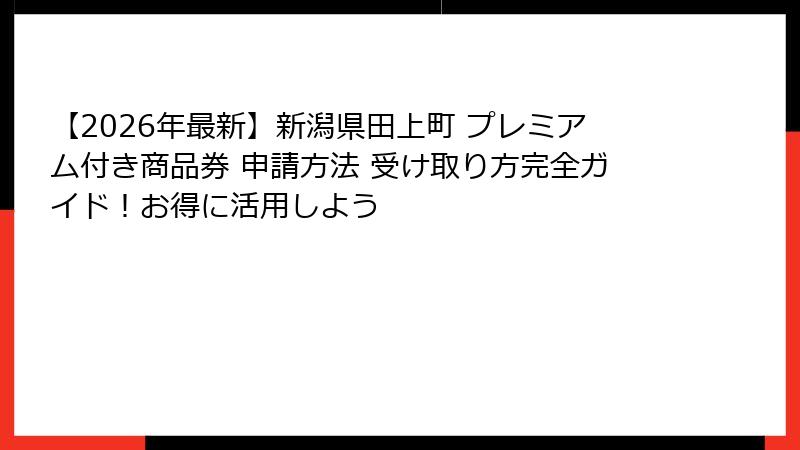 - 新潟県田上町プレミアム付き商品券とは?概要と2026年の最新情報