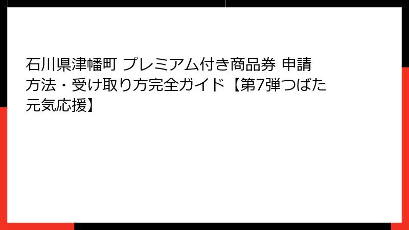 石川県津幡町 プレミアム付き商品券 申請方法・受け取り方完全ガイド【第7弾つばた元気応援】