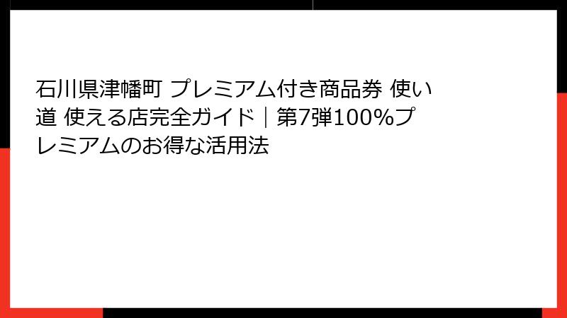 - 石川県津幡町プレミアム付き商品券の購入方法と条件 – 使い道を最大化するための準備